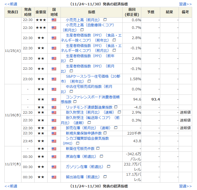 - ブラックフライデーセールがあるので小売などは上昇しやすい