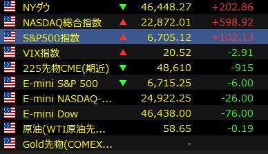 - マグニフィセント・セブンを中心にナスダックが上げを主導した