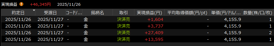 何度も155円で跳ね返されている感じがしたので、一旦利確をいれた。