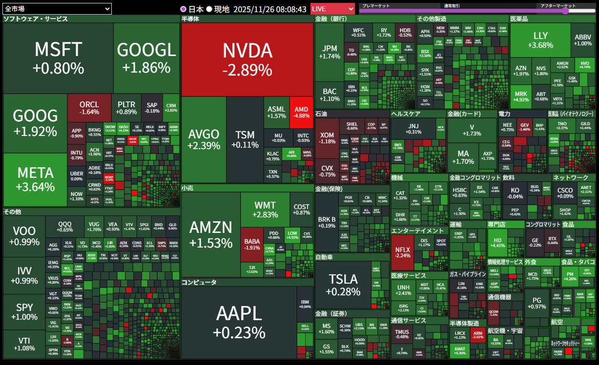 - エヌビディアが特に目立って下落した