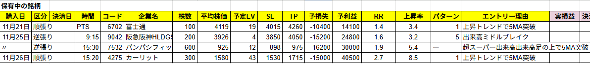 - 上昇トレンドの銘柄を中心に買っていく