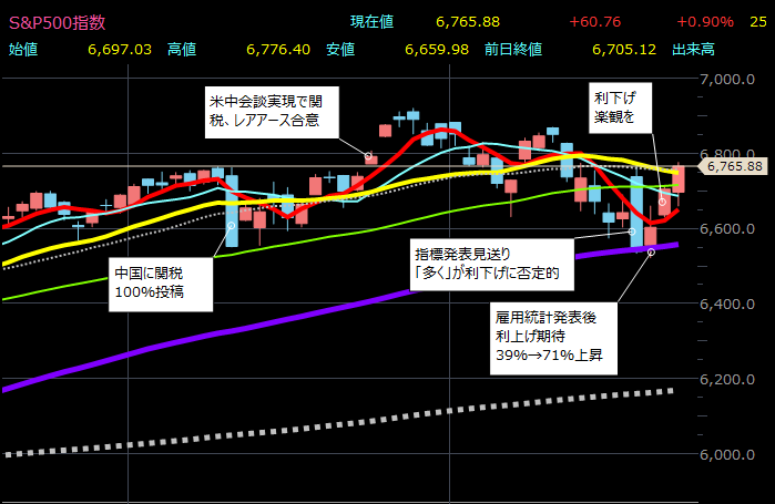 - 利下げ期待が80%超えてきて株価が上昇する