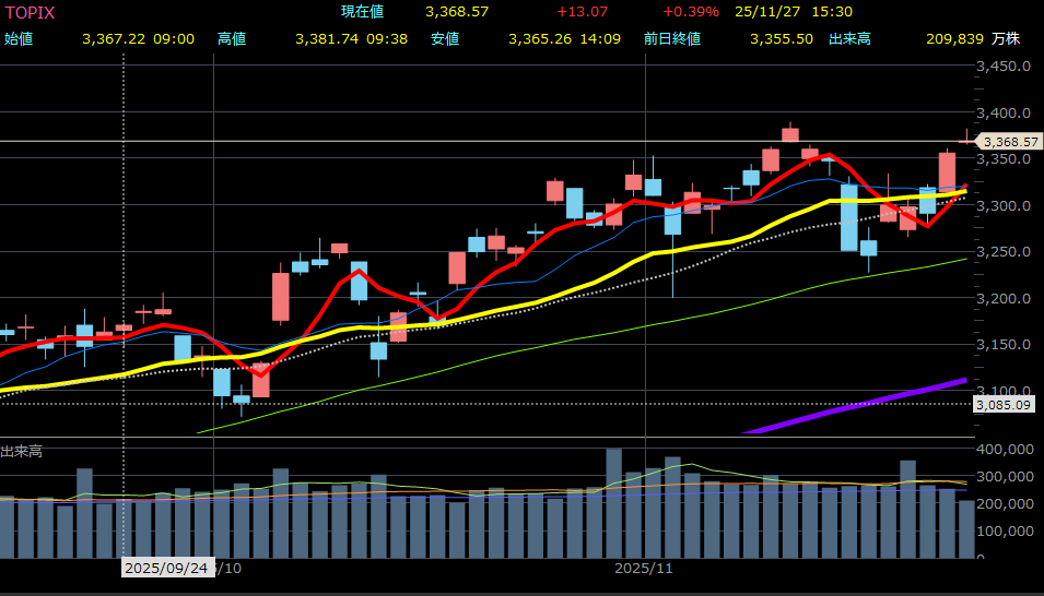 - TOPIXは最高値付近なので一旦ヨコヨコするか?