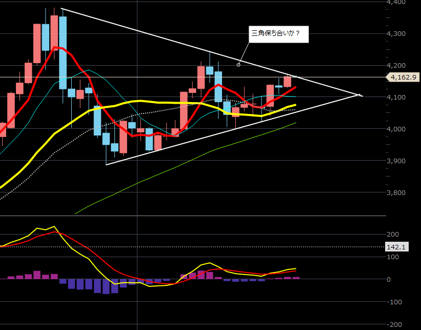 三角保ち合いになるのかなと思ったので、昨日全決済を行いしばらく様子見。