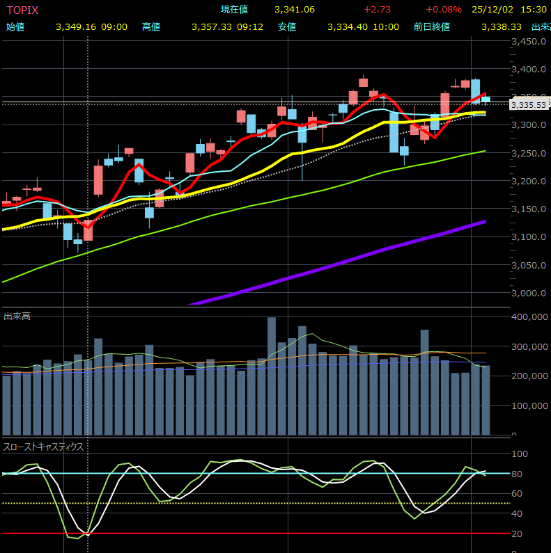 TOPIXと連動した感じなのでここから下げ幅を拡大していくかも知れない。
