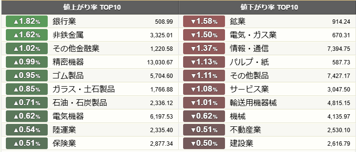 - 銀行業、金融は利上げ期待が噂から現実味を帯びてくると更に上昇している