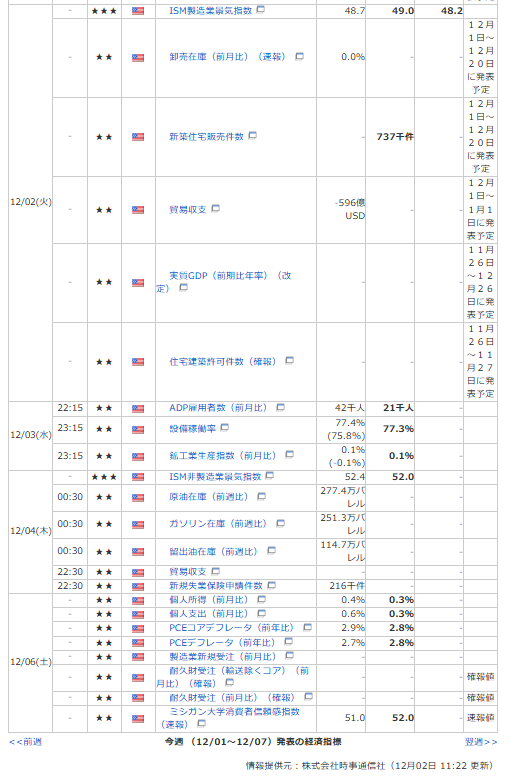 - 12月は重要な指標発表がいつあるのか注意しておく