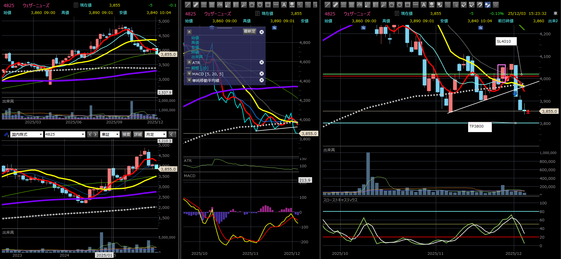 ジグザグで下げていくタイプなので、そろそろ反発もあるかと思い決済銘柄に選んだ。