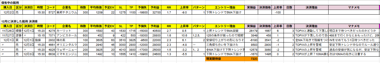 - TOPIXの方向感がでるまでは売り買い両方を保守的に行う1銘柄ずつ最大2銘柄