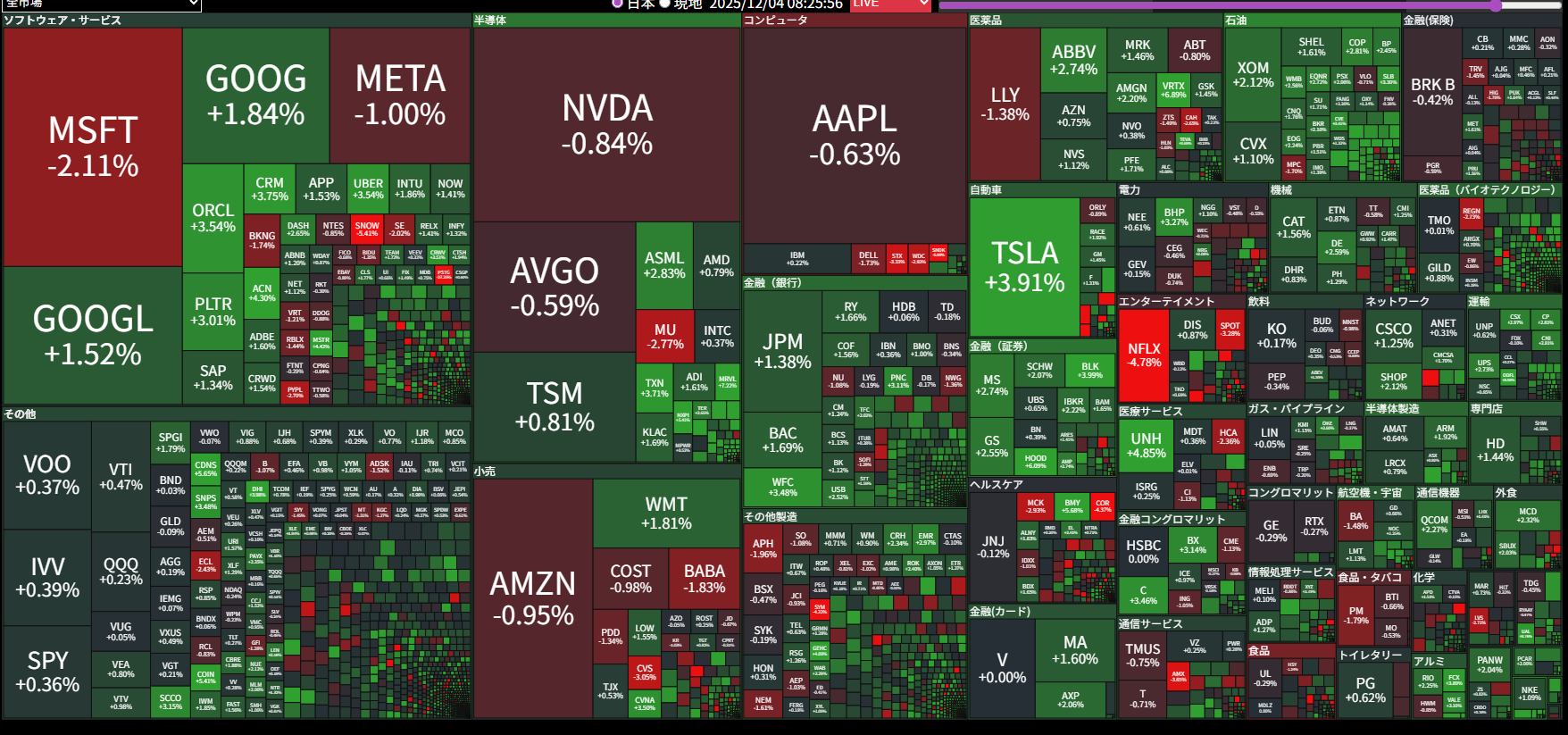 - NVIDIAやマイクロソフトが弱い。AIブーム落ち着いてくるのか
