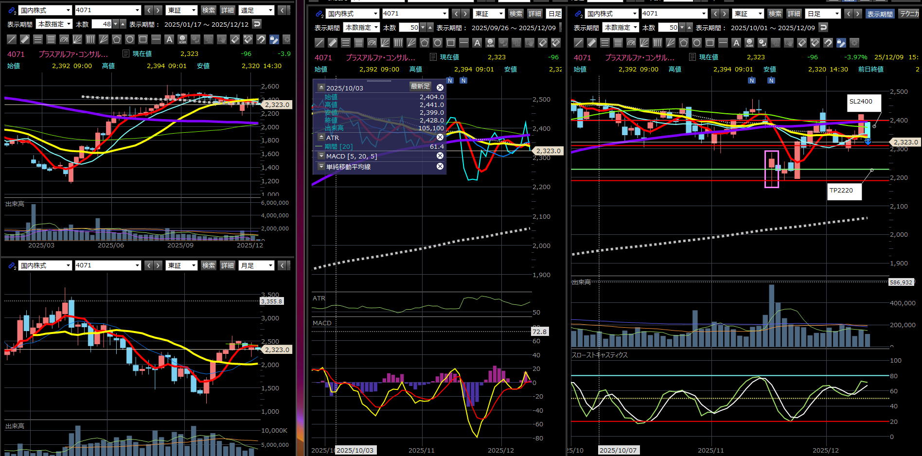 プラスアルファ・コンサルティング 4071【売】 12月9日火曜日