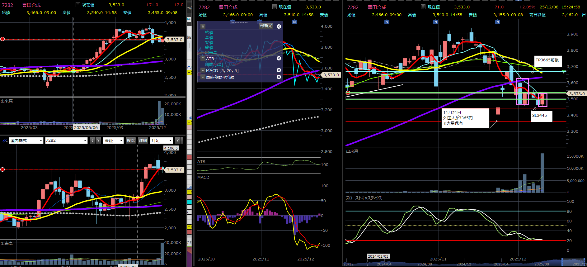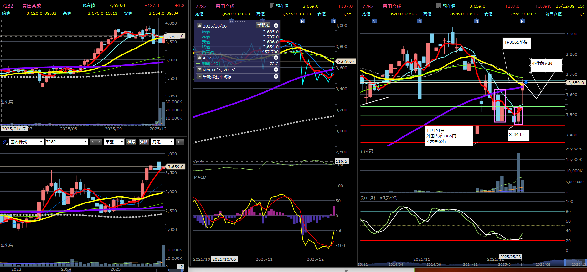 想定よりも勢いよく上昇した。寄付で3663円→3555円まで下落→3676円と乱高下したのでヒヤヒヤした。