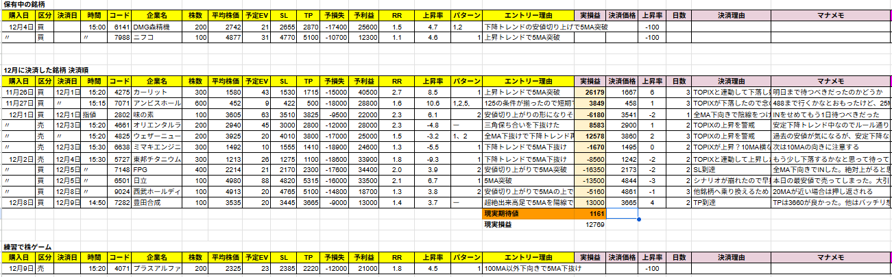 9時後半に上昇した後に大引まで売られ続けた。5MAが下向きになってきたがシナリオは崩れていないので継続保有する。