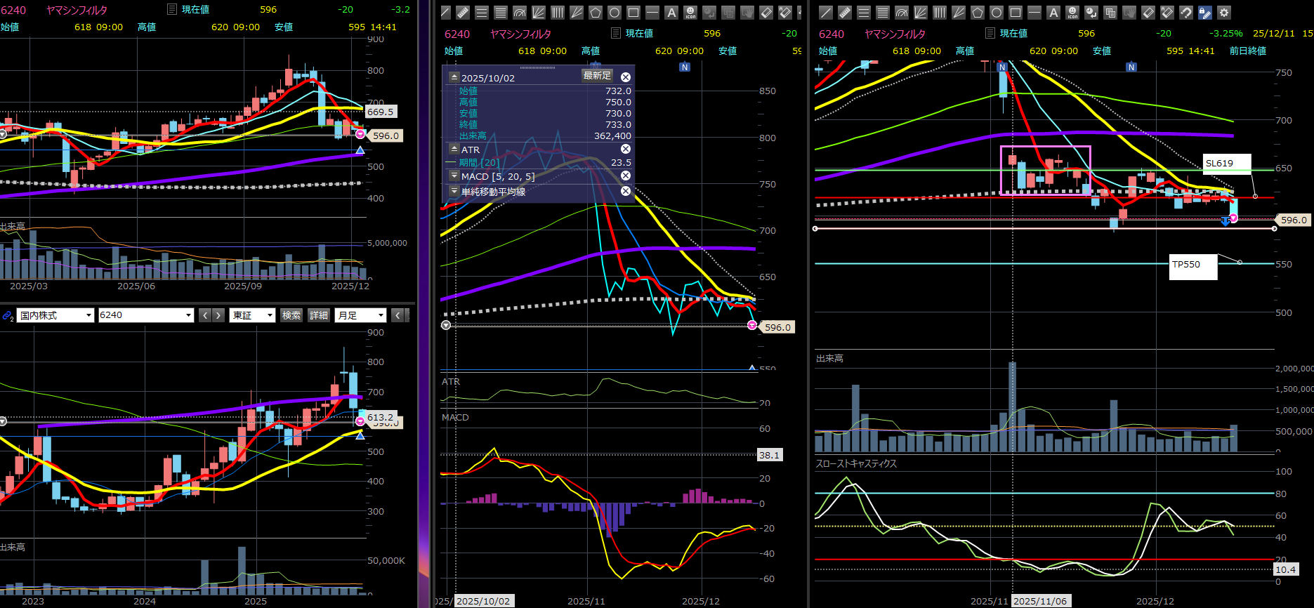 前回は10MAのサポートがあったけど、今回は全MAを下抜けた。