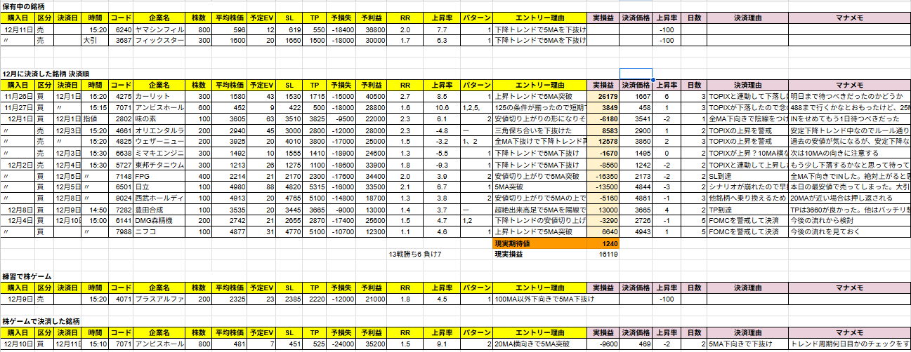 決済日 12月11日木