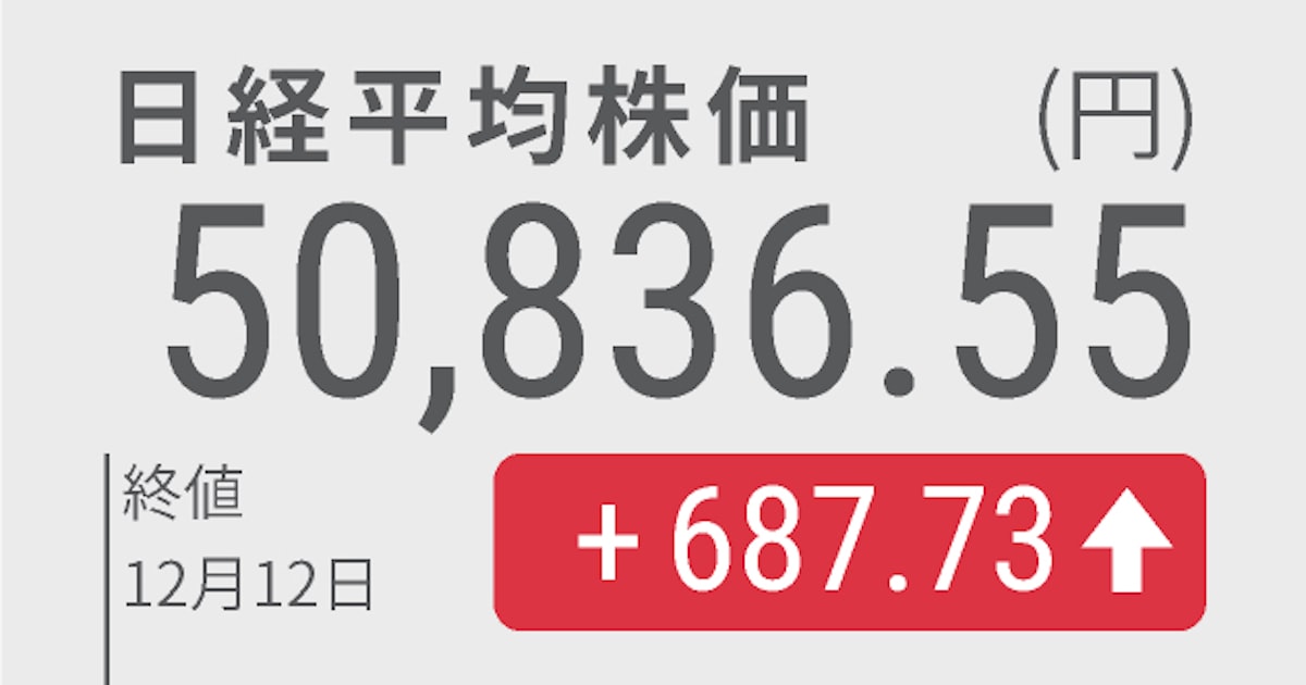 日経平均株価687円高 出遅れ株にも米利下げマネー、半導体部材に買い