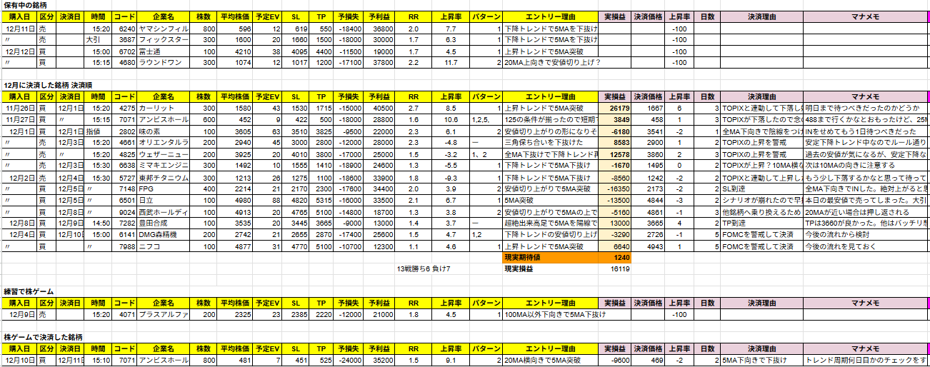 全指数が上昇したので流石に買い戻された。上昇を試みたが10MAに跳ね返されて全戻しのSLには到達しなかった。