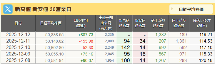 [東京 12日 ロイター] – きょうの東京株式市場で日経平均株価は、反発すると想定されている。米国市場でS&P総合500種(.SPX)とダウ工業株30種(.DJI)が終値で最高値を更新した流れを受け、自律反発を期待した買いが先行すると見込まれている。決算を発表した米半導体大手ブロードコム(AVGO.O)の株価が時間外で上昇していることも追い風になりそうだ。