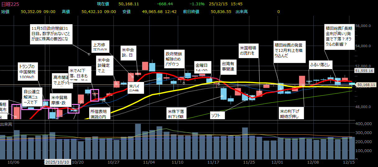 目先については、海外勢が休暇に入るタイミングとなり「商いを伴って指数が上方向を試すのは難しく、5万円を挟んでの推移が続くのではないか」(及川氏)という。