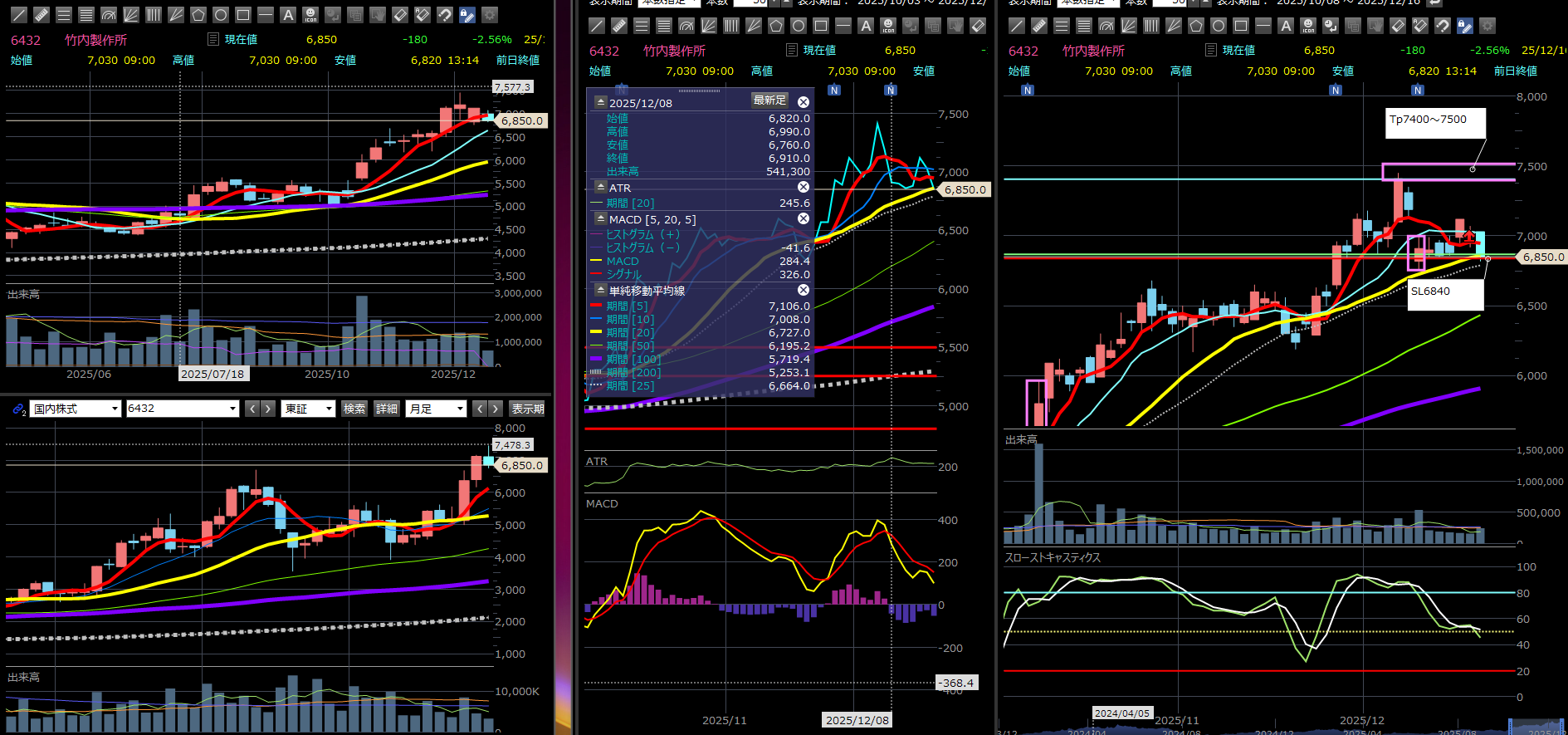 竹内製作所 6432【買】 12月15日月曜日