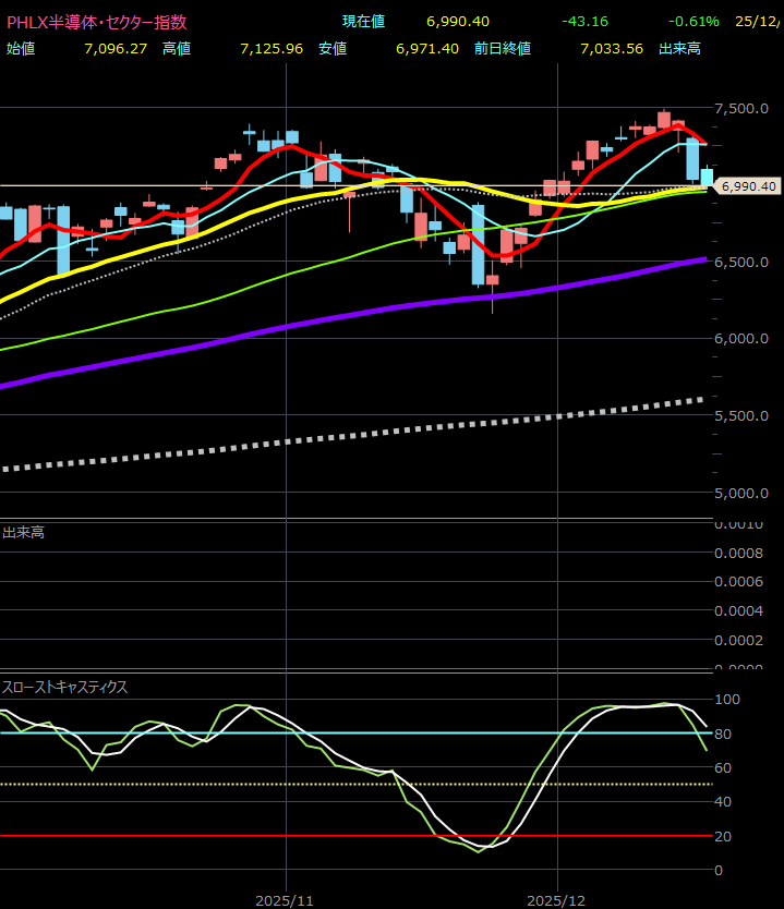 - SOX指数が上昇できるかにかかっている。50MAを下抜けると6500まで下落する