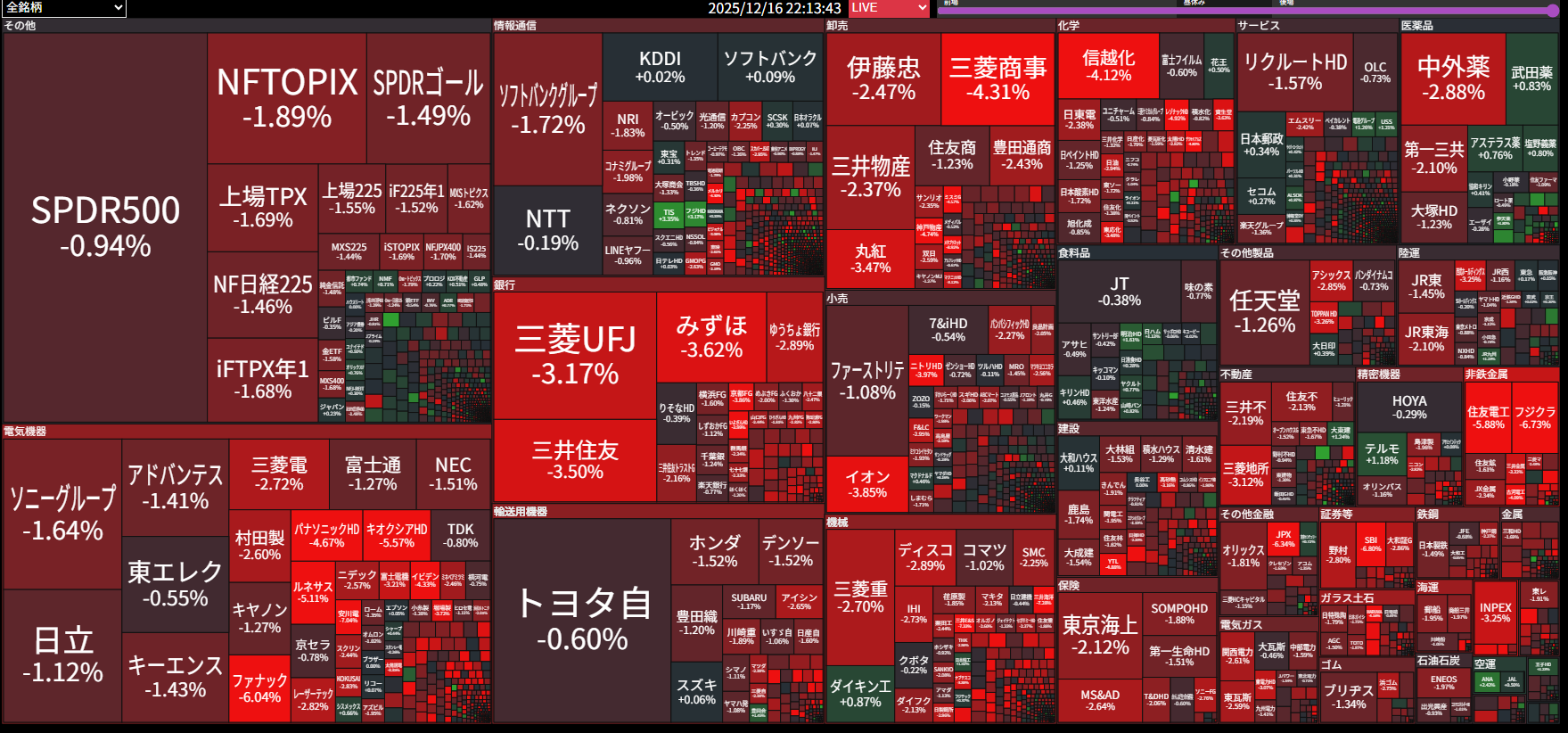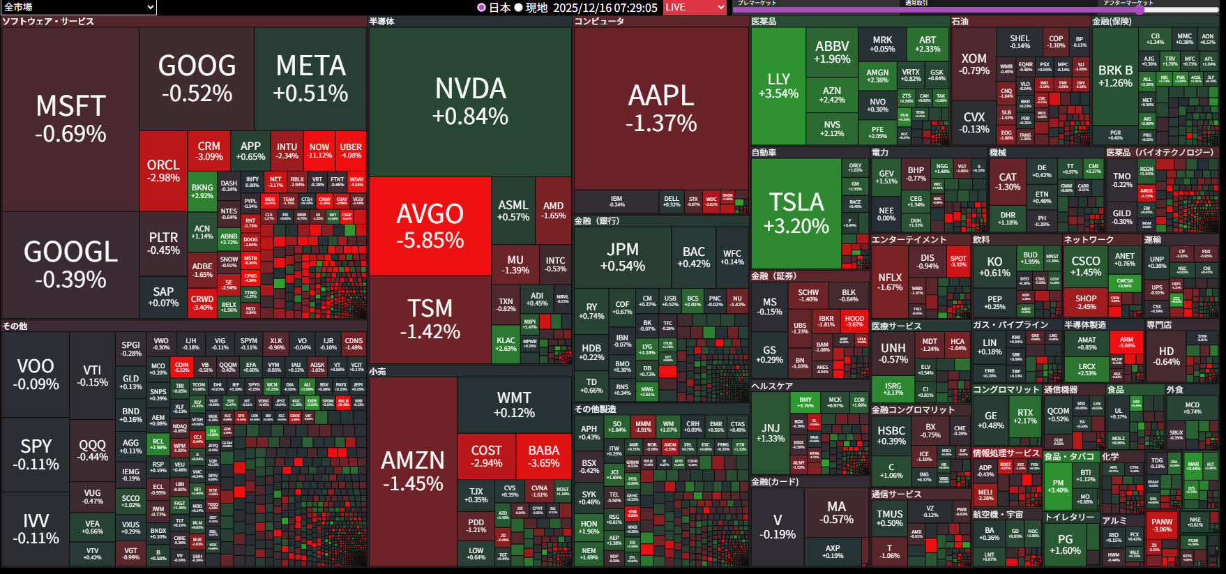 - 米のヒートマップはハイテク関連株だけが下がっているので、日本も同じ様になる