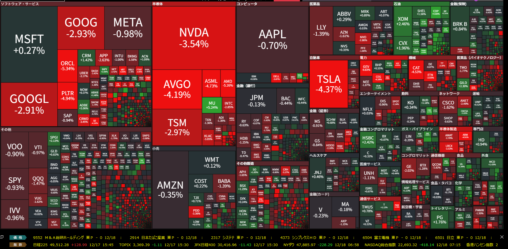 - ハイテク株が軒並み下落。