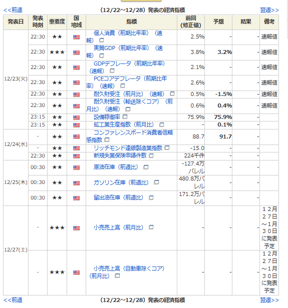 - 23日火にGDPと消費者信頼感指数が弱かった場合→利下げ期待前進