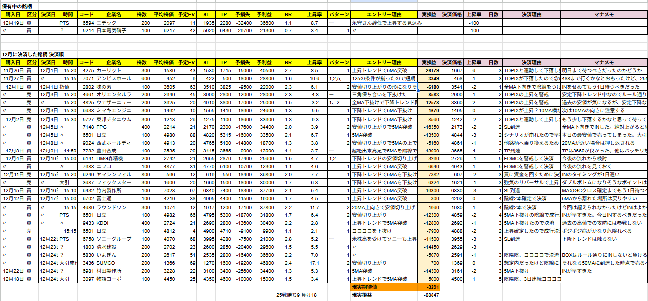 - クリスマスラリーなのか手仕舞いなのかどっち?→損益通算で手仕舞いだった