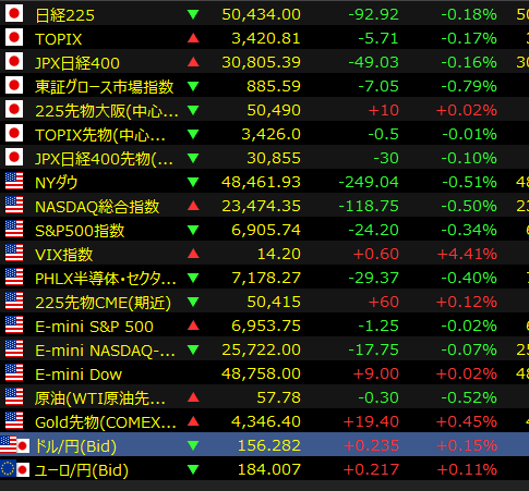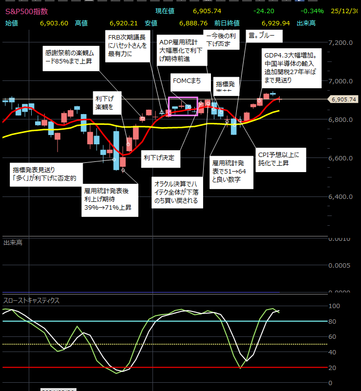 - 米国のベネズエラ地上攻撃開始(ベネズエラ近隣諸国含む)→とても強い上昇要因→そうでもないので、ニュースなどで本格的に報道されてからかな