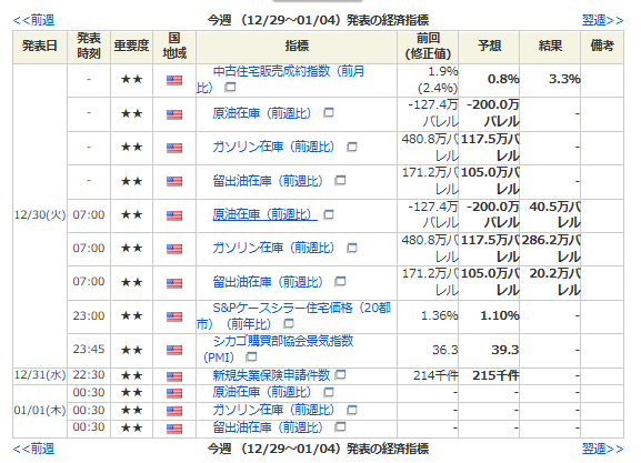 今週の経済カレンダー