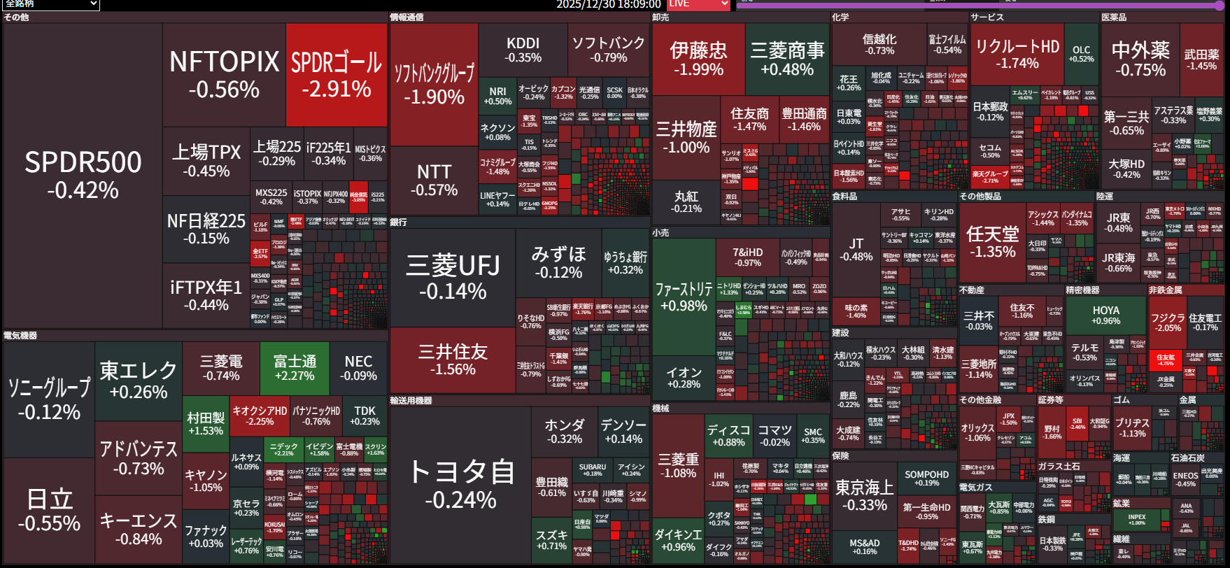 - 全体的に下落した