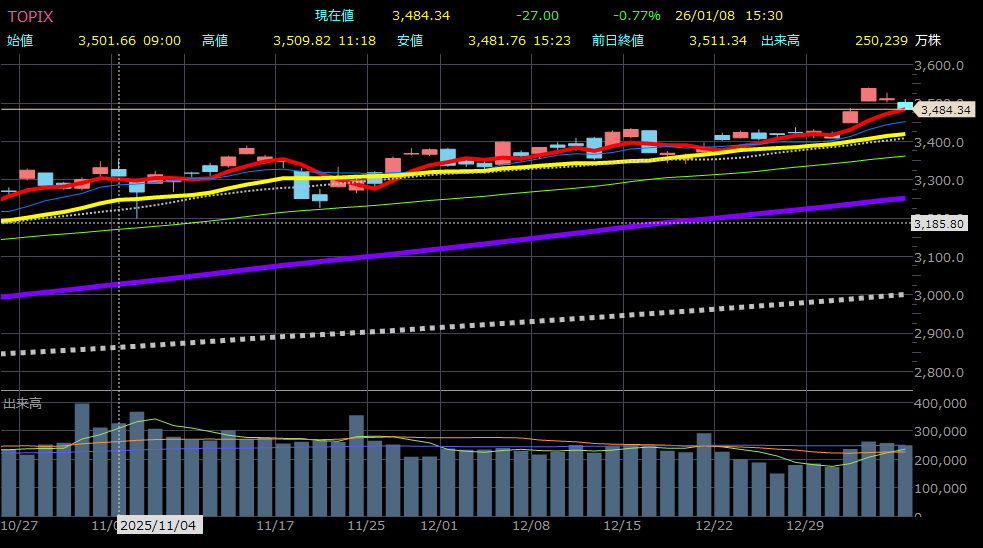 - TOPIXが上昇し始めるタイミングでINしていこう