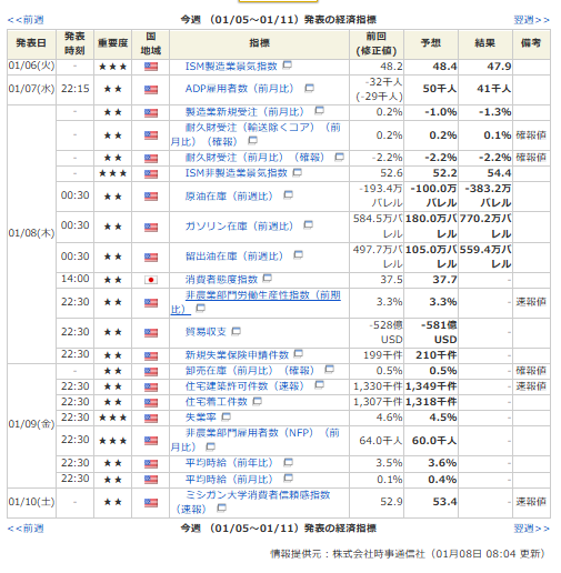- 1月6日アメリカ・ISM製造業景気指数 12月→特に影響はなかった