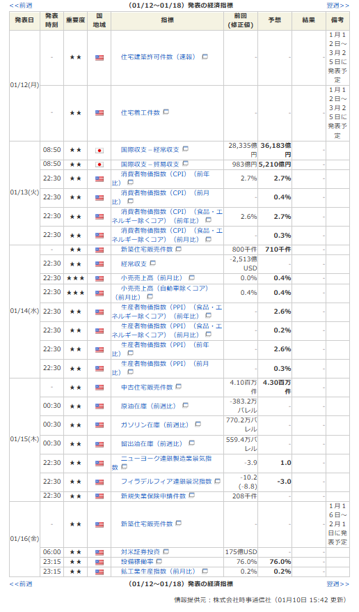 - 1月13日CPIに注目が集まっている→12日月曜は様子見になりそう
