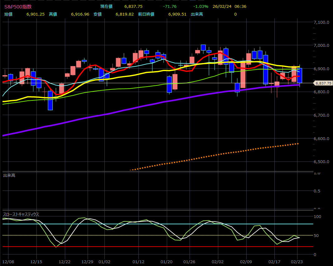 2026年2月24日午前 6:25[ニューヨーク 23日 ロイター] – 米国株式市場は主要3指数が1%以上下落して取引を終えた。人工知能(AI)に関連する混乱への継続的な懸念に加え、関税を巡る不透明感の再燃を受けてリスクの高い株式から資金が逃避した。