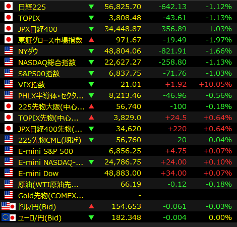 日経平均は小安く始まった。トランプ米大統領が非常事態権限に基づいて発動した広範な関税措置を米最高裁が違法とする判断を下した一方、トランプ氏は各国からの輸入品に15%の代替関税を課すと表明し、先行きの不透明感を嫌気する売りが先行した。